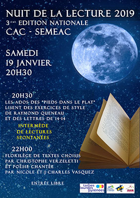 Centre Albert Camus de Séméac : Samedi 19 janvier à 20h 30, La Nuit de la Lecture