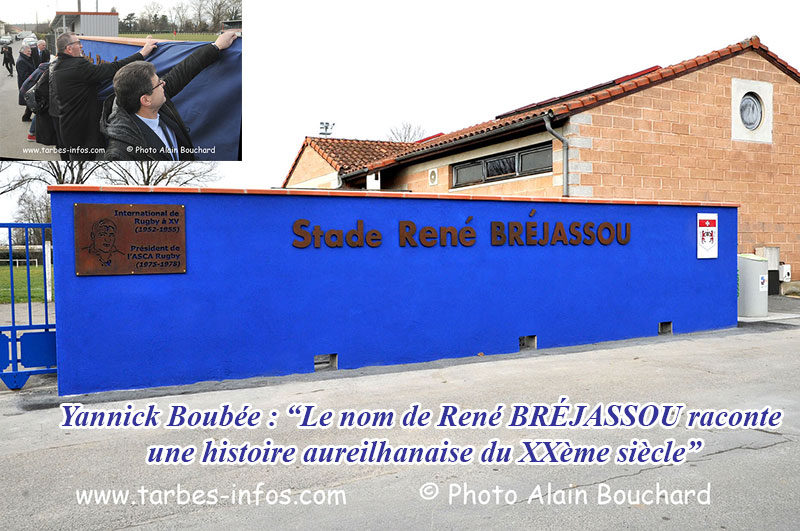 La cérémonie de dénomination avait donc été programmée pour le samedi 11 janvier 2019. Pour la circonstance, le maire Yannick Boubée et son conseil municipal avaient convié des personnalités du rugby pour cet événement. Ainsi aux côtés de Régine et Gilles Bréjassou, fille et fils de René Bréjassou et des membres de la famille, on notait la présence de Jean Glavany, ancien ministre ; plusieurs élus, Alain Doucet, président de la ligue régionale Occitanie, Jean-Pierre Garuet, Louisou Armary, Philippe Dintrans, anciens internationaux qui opéraient comme René Bréjassou aux fauteuils d’orchestre, Jean-Paul Xuereb, président du comité départemental de rugby, Jean-Yves Mouret, responsable de la maison ovale du territoire, Patrick Laharrague, président de l’ASCA Rugby, plusieurs responsables associatifs…(...)
