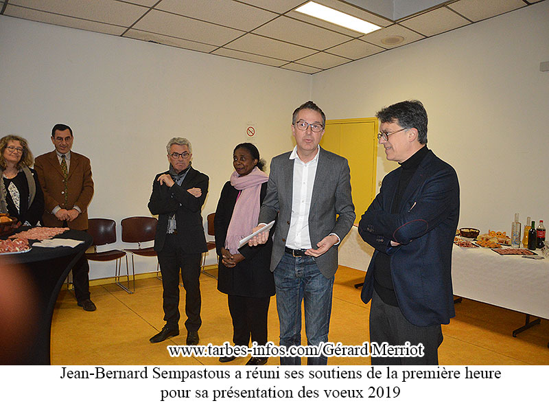 10 janvier 2019, par rédactionJean-Bernard Sempastous, député LREM des Hautes-Pyrénées (1ère circonscription) a souhaité présenter ses vœux 2019 avec ses premiers soutiens qui l’ont aidé à conquérir le siège de député le 18 juin 2017. Hier soir, il avait donc convié une quarantaine de personnes à la salle des conférences du centre routier Kennedy à Tarbes pour partager un moment de convivialité à l’aube de la nouvelle année. L’occasion pour lui de remercier d’abord François-Xavier Brunet, président de la CCI de Tarbes et des Hautes-Pyrénées, Camille Denagiscarde, directeur de la chambre consulaire, par ailleurs respectivement premier maire adjoint de Tarbes et maire de Tournay, deux inconditionnels de la République en Marche et du Président Emmanuel Macron. Etaient également présents Virginie Siani, présidente du groupe LREM au conseil départemental et Jacques Brune, vice-président du conseil départemental, membre également du groupe LREM. Dans l’assistance, on remarquait quelques élus dont Philippe Viau, maire de Marsan qui avait été candidat aux dernières élections sénatoriales avec Virginie Siani.(...)