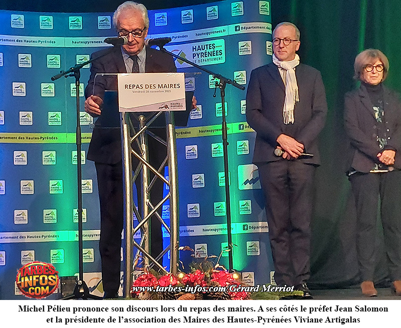Vendredi 28 novembre 2025, à la foire-exposition de Tarbes, le traditionnel repas des maires qui a suivi l’assemblée générale des Maires des Hautes-Pyrénées, s’est tenu dans une atmosphère à la fois conviviale et grave. Comme chaque année, ce fut l’occasion pour Michel Pélieu, président du Conseil départemental, de rappeler l’engagement du Département auprès des élus locaux.(...)