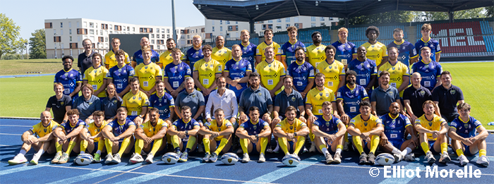 Bourg-en-Bresse : 1 Burlet, 2 Jullien, 3 Kardava, 4 Witt, 5 Templier, 6 Stringer (Cap.), 8 Quiros, 7 Aït Naceur, 9 Martin, 10 Azais, 11 Doucet, 12 Matavesi, 13 Bade (MT)t, 14 Margarit, 15 Massip