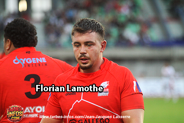 Tarbes : 1 Baggiani, 2 Lamothe (Cap.), 3 Vea, 4 Estaque, 5 Toleafoa, 6 Salman, 8 Saint-Guilhem, 7 Guicherd, 9 Viola, 10 Manchot, 11 Latorre, 12 Van de Ven, 13 Cellier, 14 Roux, 15 Demaï-Hamecher